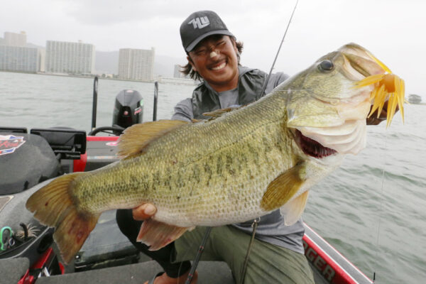 より研ぎ澄まされたアプローチがキー!「令和のフリッピング」 今回、たまらんばいが自身に課したお題は、目で見える釣りと目で見えない釣り。 目で見えない釣りは魚探でウイードエッジを探して釣ることだが、目で見える釣りは水面まで伸びたウイードを目で観て狙う釣り