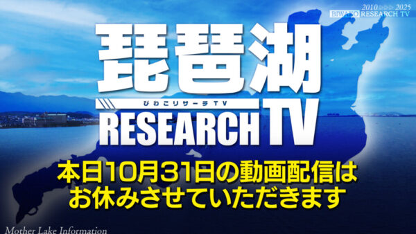 いつも琵琶湖リサーチTVをご覧いただきまして、ありがとうございます。 本日10月31日(金)配信の琵琶湖リサーチTVはお休みさせていただきます。 今後とも琵琶湖リサーチTVをよろしくお願いいたします。