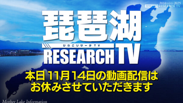 いつも琵琶湖リサーチTVをご覧いただきまして、ありがとうございます。 本日11月14日(金)配信の琵琶湖リサーチTVはお休みさせていただきます。 今後とも琵琶湖リサーチTVをよろしくお願いいたします。