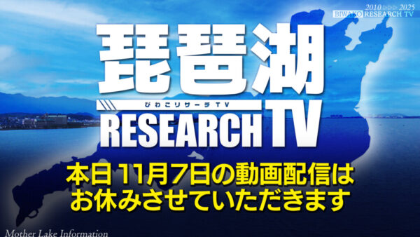 いつも琵琶湖リサーチTVをご覧いただきまして、ありがとうございます。 本日11月7日(金)配信の琵琶湖リサーチTVはお休みさせていただきます。 今後とも琵琶湖リサーチTVをよろしくお願いいたします。