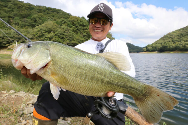戦慄の表層ワーミング「アジャストレート12inch FAT」のタダ巻き 今回のロケというか、カナモの夏休みで初日のメインとなったのが、ロングワームの表層アプローチ。 夏で、リザーバーで、ロングワーム。 といえば、細長いロングワームのライト