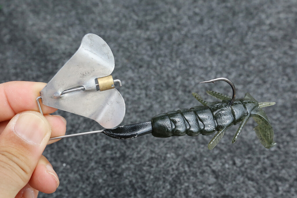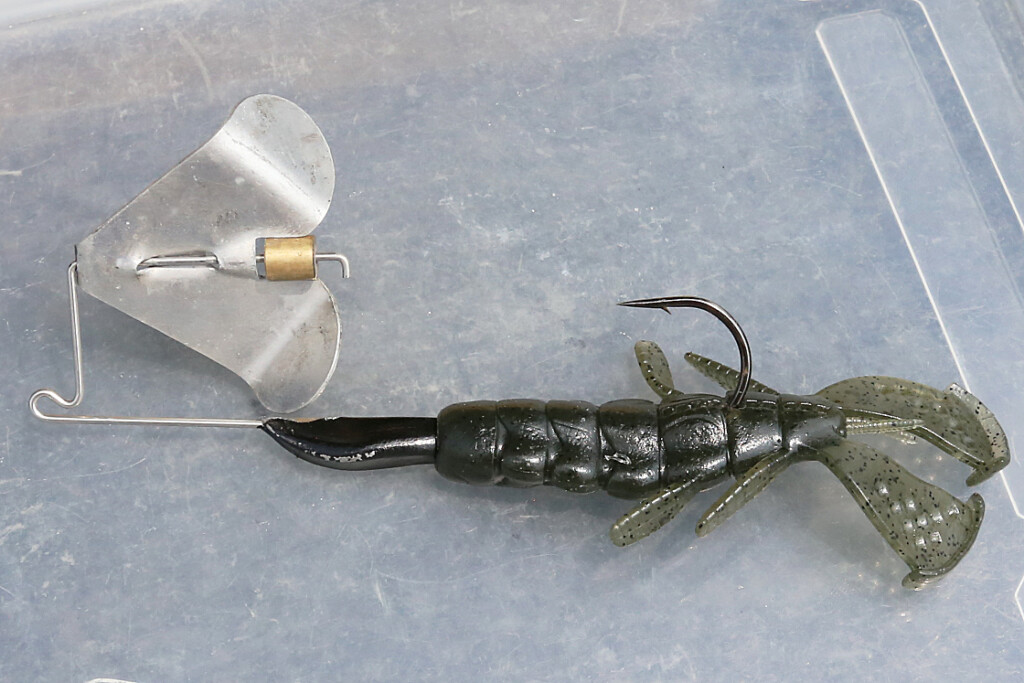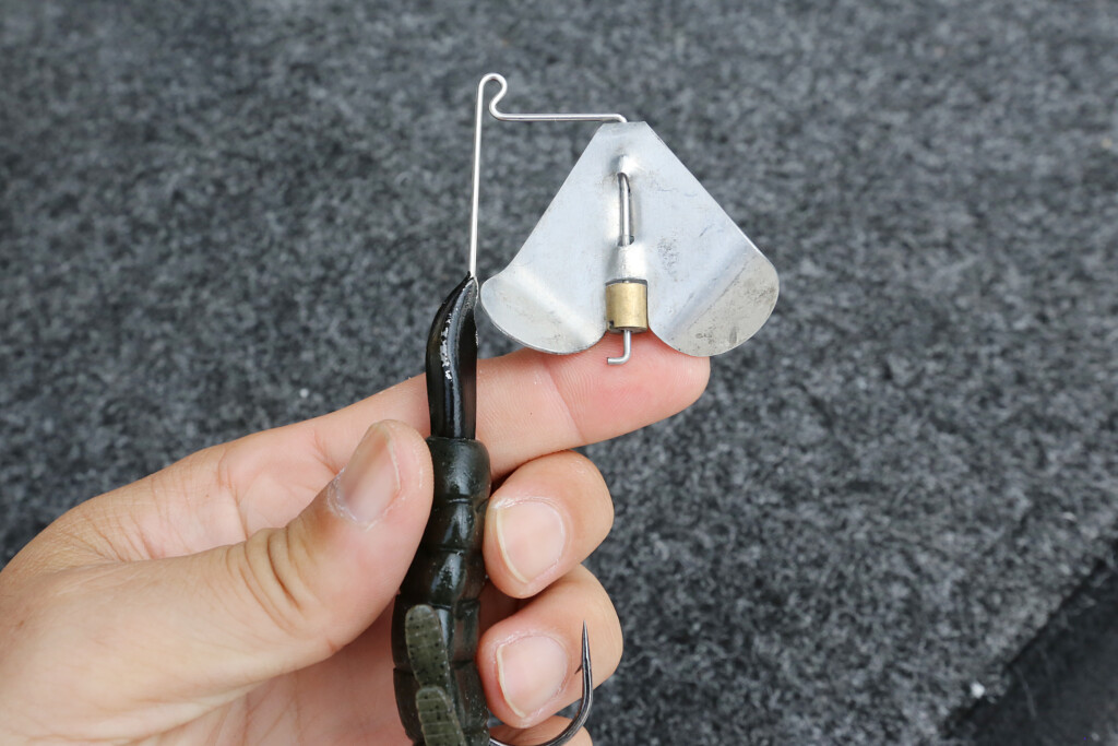トレーラーにスラップホッグをセットして、飛距離と浮きあがり、巻いた時のアピール度もさらにUPさせるセッティングで使用。