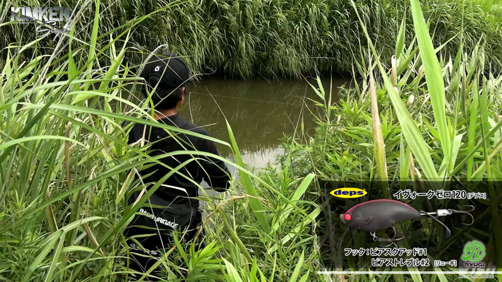 キムケンの経験上、真昼間の晴天でもブッシュが多ければ付き場も多く、シェードに付きやすい時期はノイジー系でもチャンスはあるとのこと。