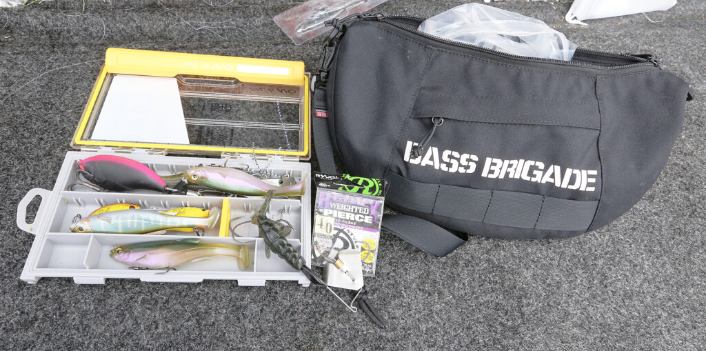 ワームや小物はバッグに詰め込み、基本的にルアーはだいたいこの中で完結。