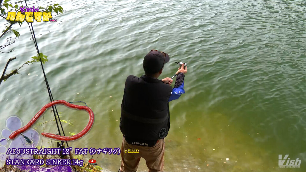 しっかり見せて食わせるロングワームだが、食わせるべき場所や食いそうな場所では見せすぎてもダメな場合がある。