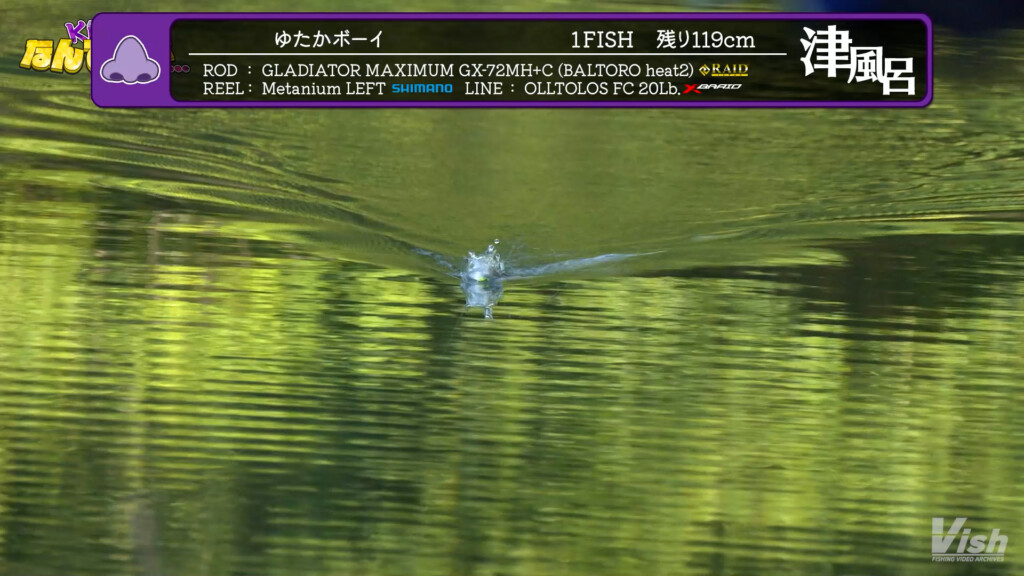 想像以上のスピードで水面をジョボジョボ巻くゆたかボーイ。