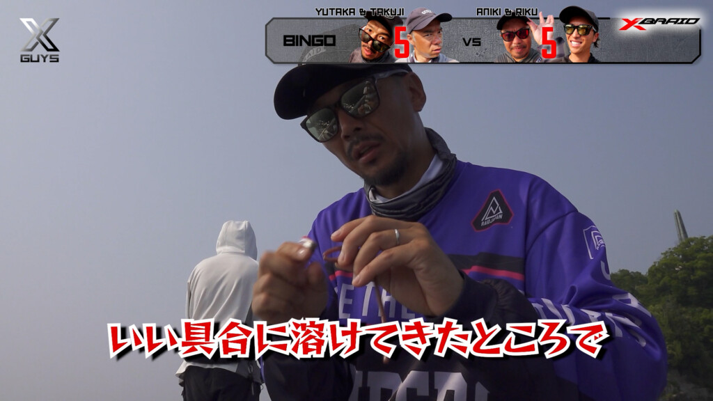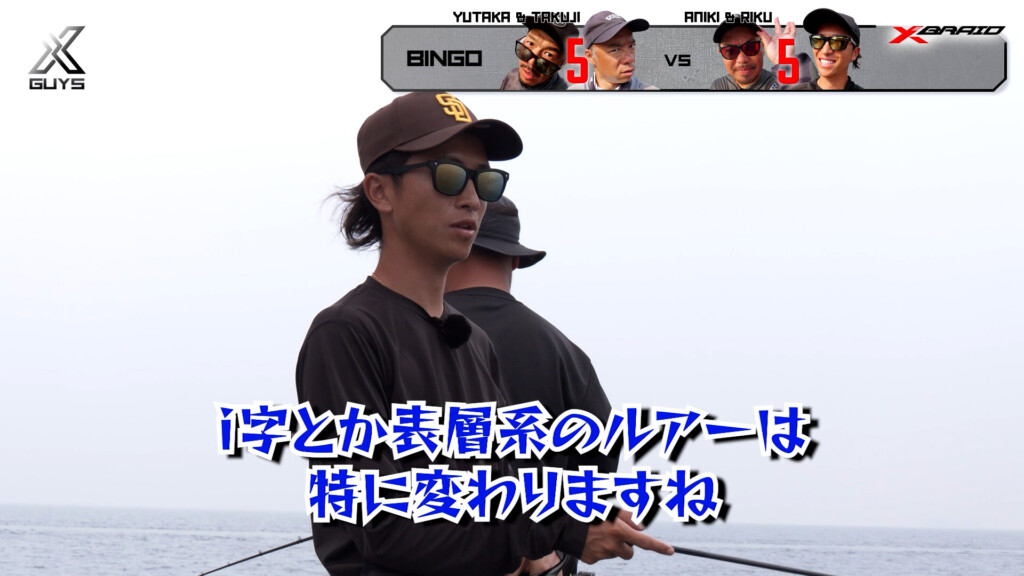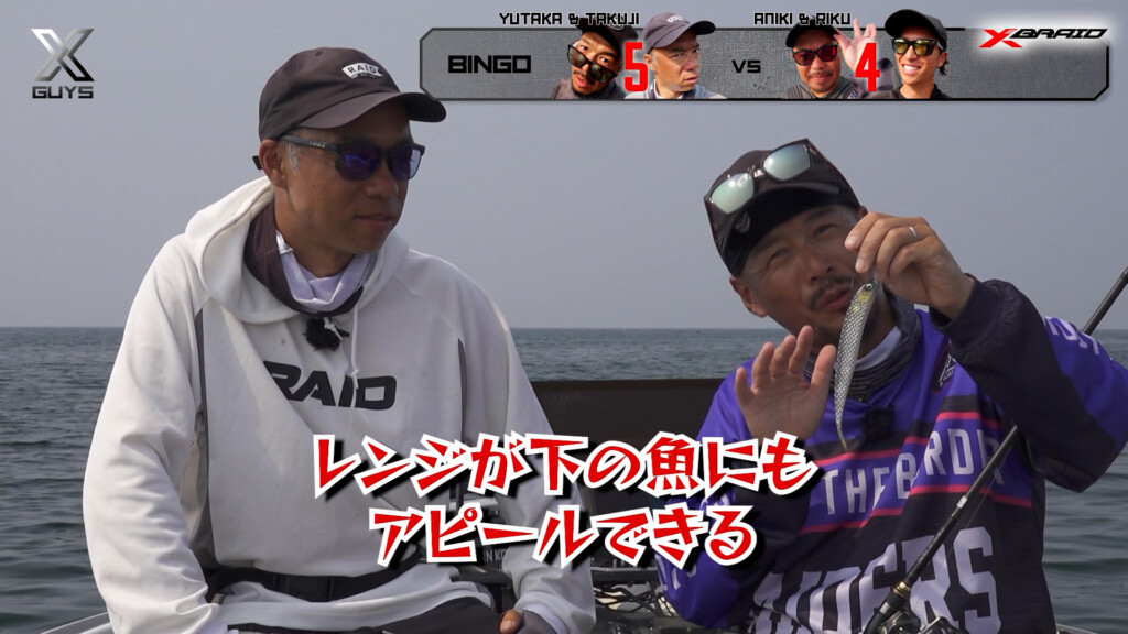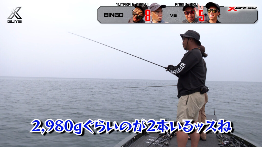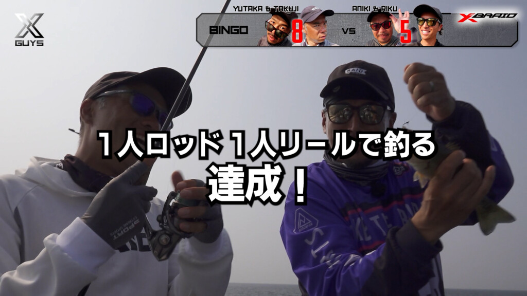 どっしり構えて魅せる釣りで達成をもくろむアニキ&リク組。