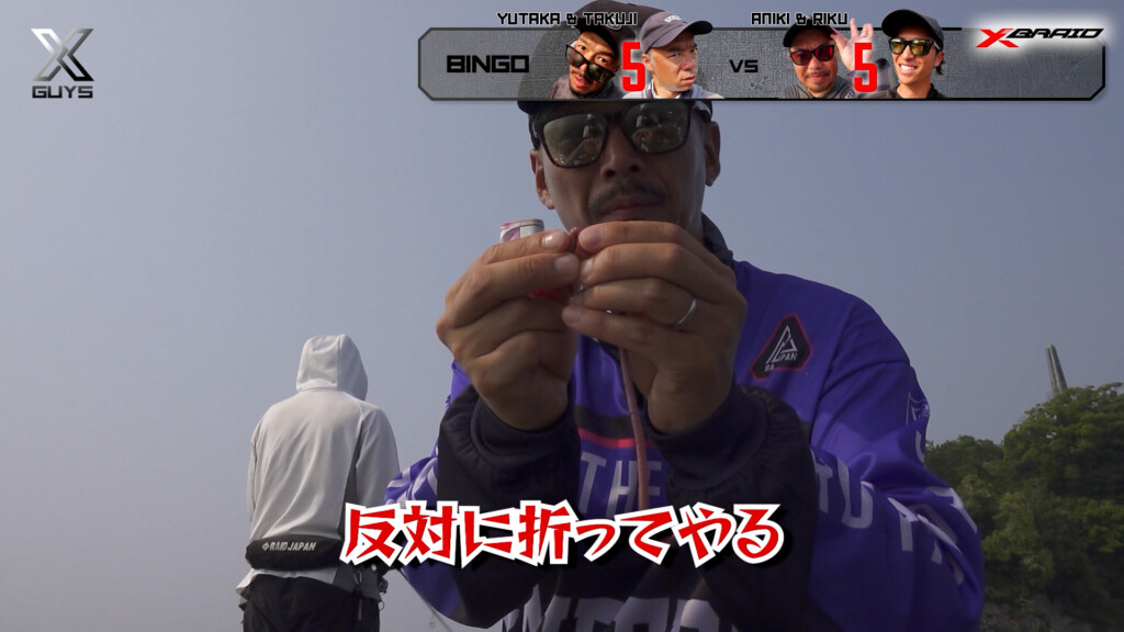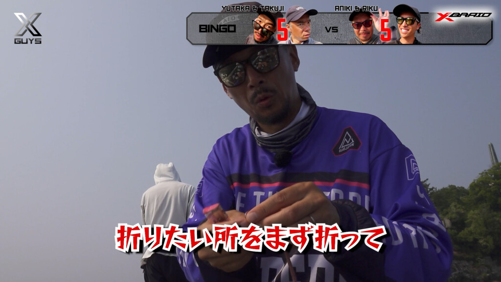 ゆたかボーイ改め、勝手にチューンドファクトリーの高須賀工場長によると、まずはワームの折りたい所を折ってやる。