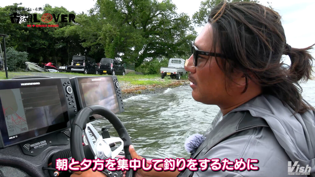 魚の多いエリアもあらかじめ把握しているため、季節や釣り方に合ったエリアセレクトで転々と周っていくのが、北湖のガイド。