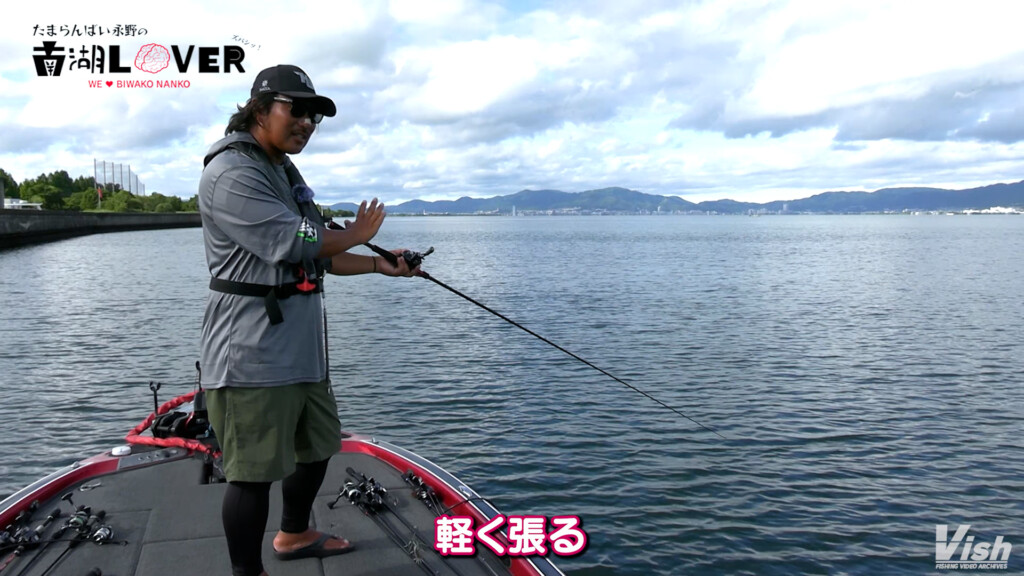 元祖痙攣アクションの生みの親、たまらんばい永野いわく、ステイしたあとにロッドで叩く前は必ず軽くテンションを掛けて張ること。