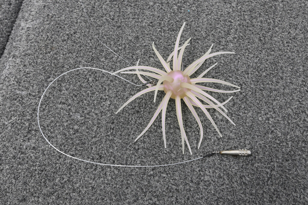 このリーダーの優れている所は、フックもシンカーもワンタッチでセットできるところ。