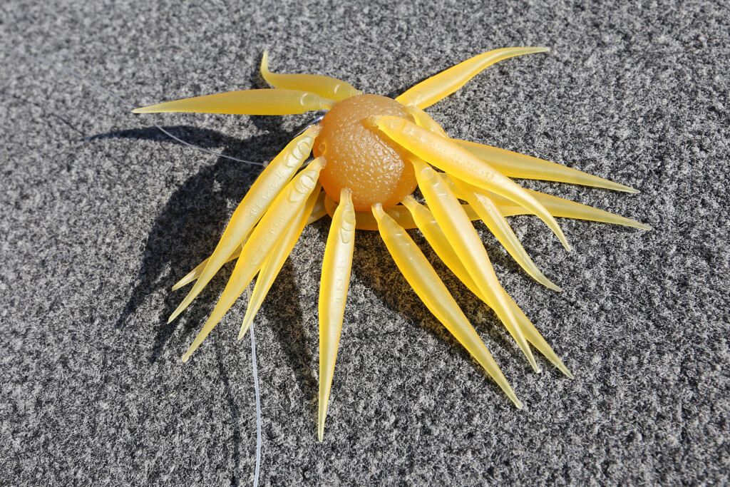 コイケの毛一本一本が魚の形になっており、目やヒレもリアルに再現。。
