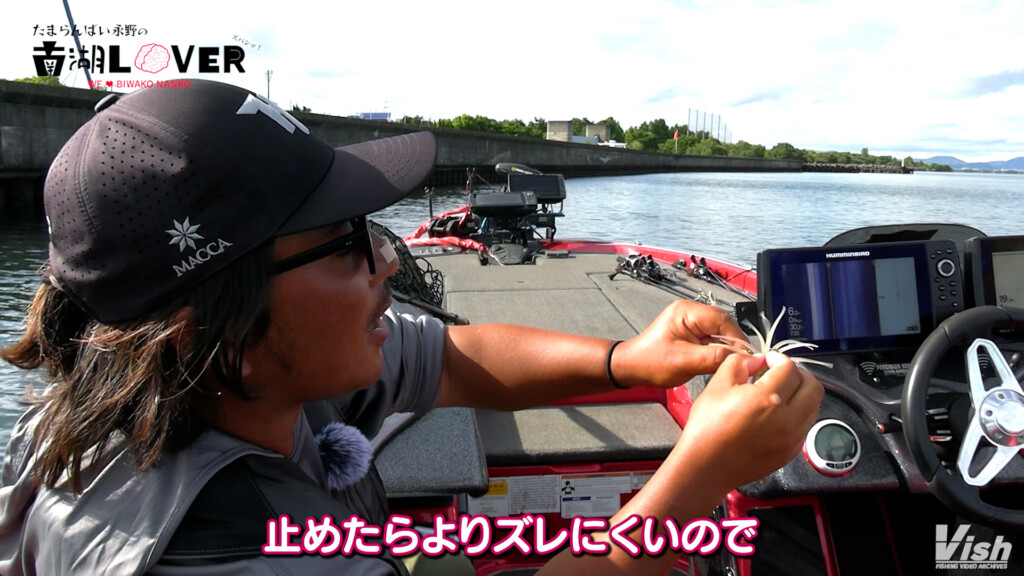 キャストした際や動かした時にワームがズレるとフックの掛かりシロも狭くなるため、現在はズレないような工夫を施している。