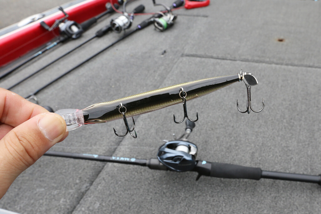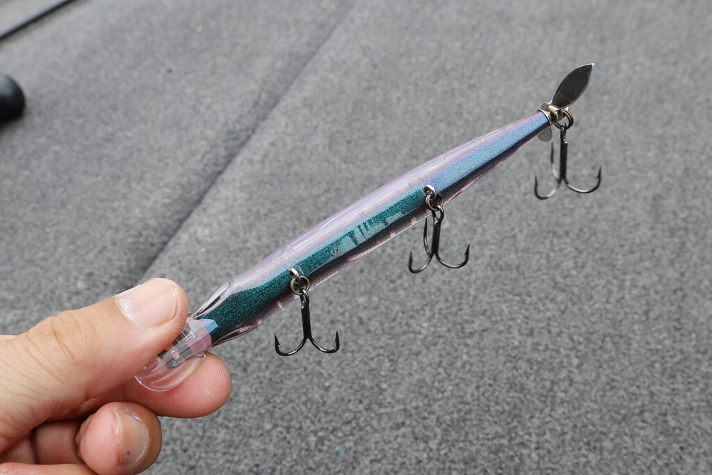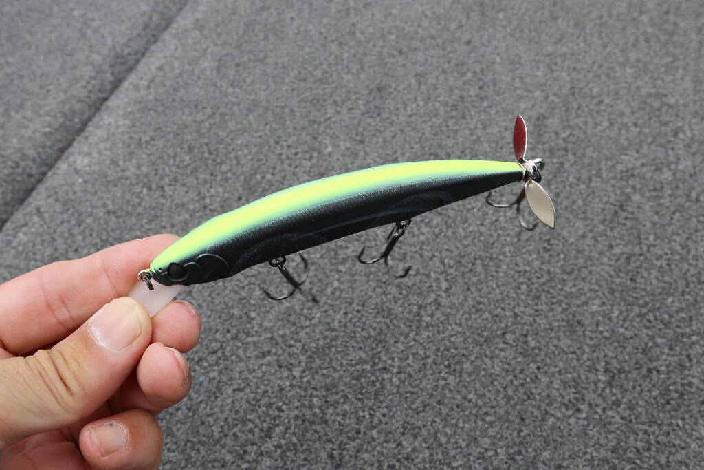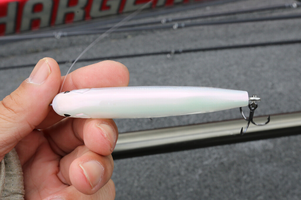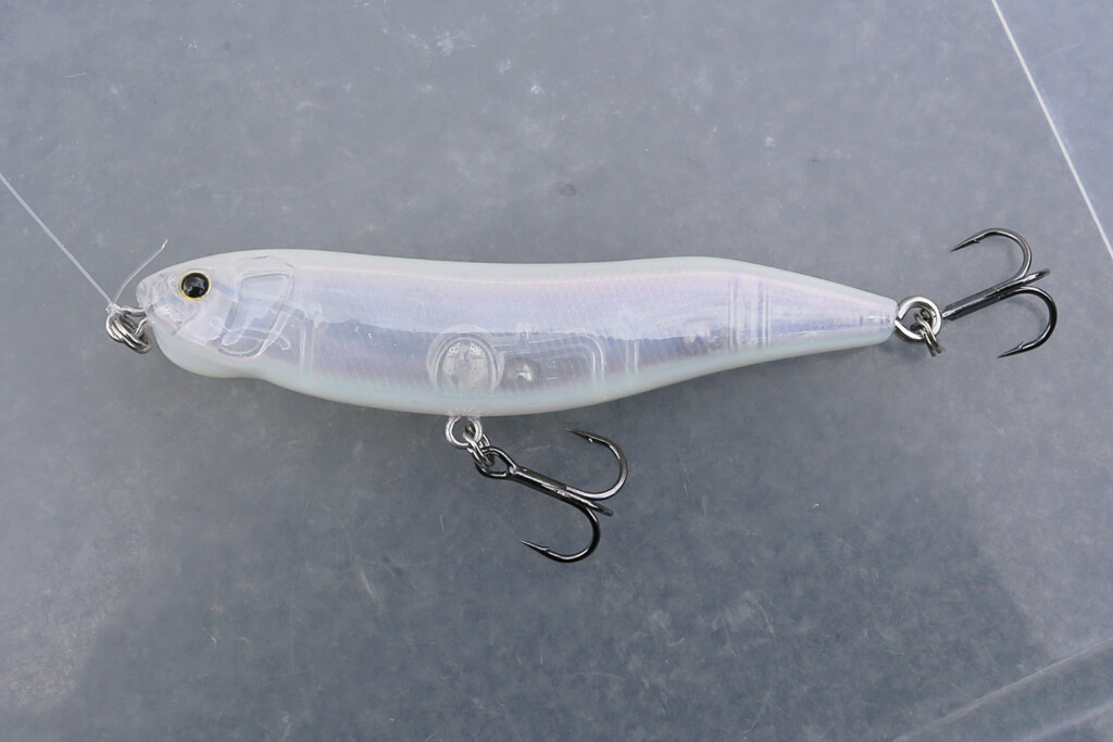 HUミノー111FSよりも、さらにスピードを活かしたリアクション水面ゲームを楽しめるのが、ペンシルベイト。