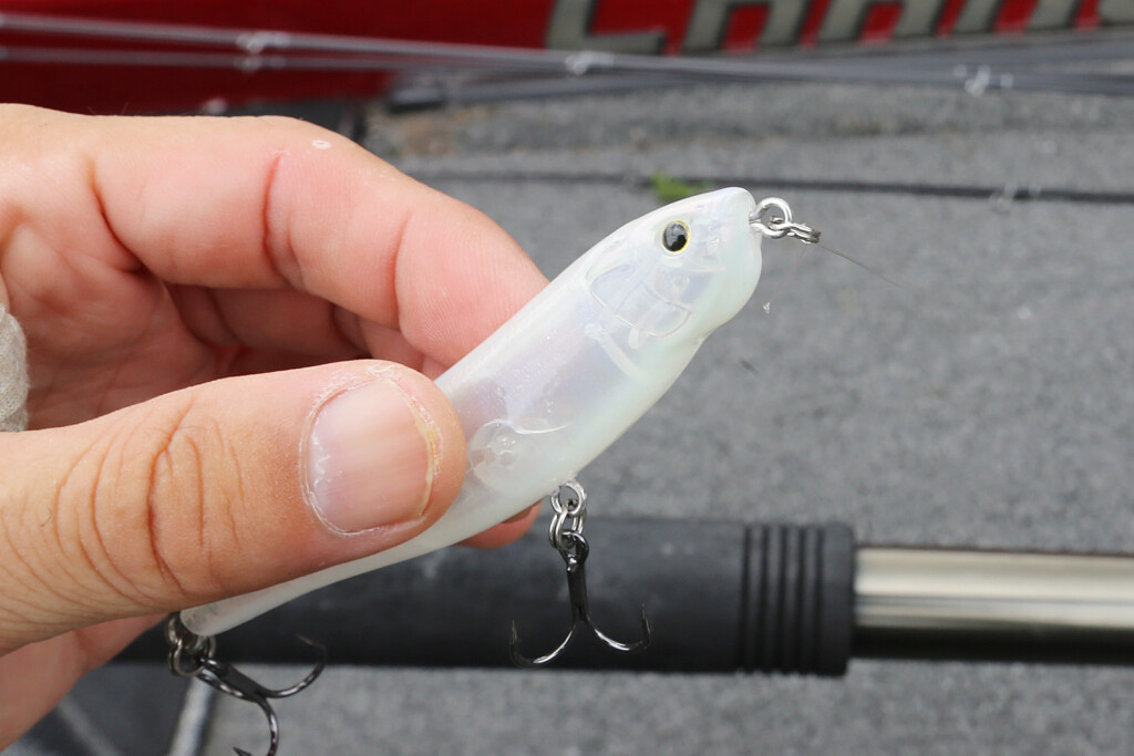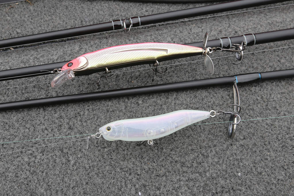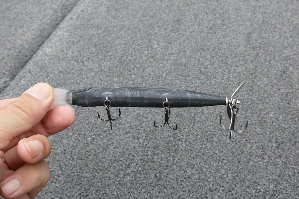 フロロラインでルアーの前20ー30cmほど水に沈んでいる状態をキープするのが、うまく「どばふ」を引きだすコツ。