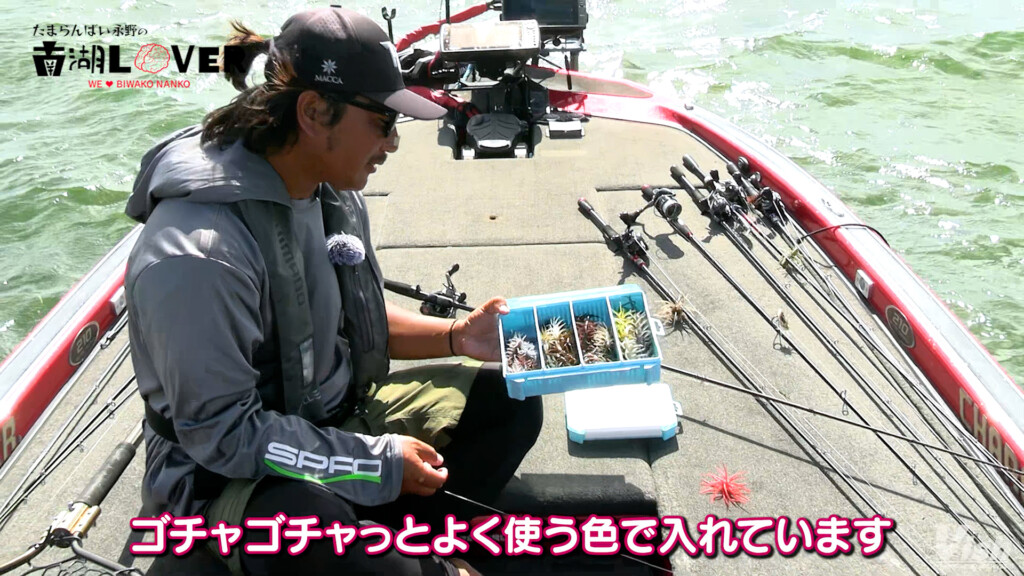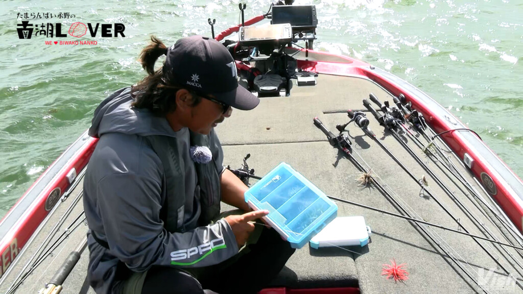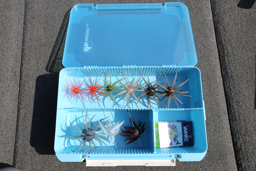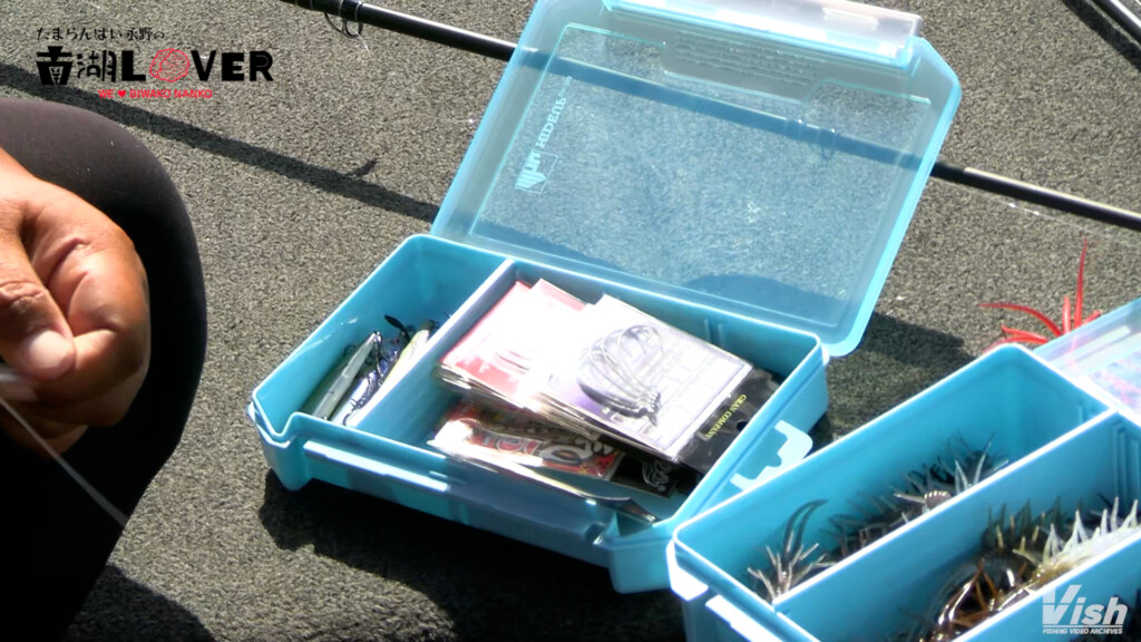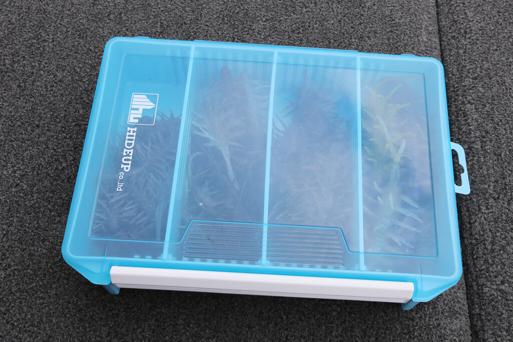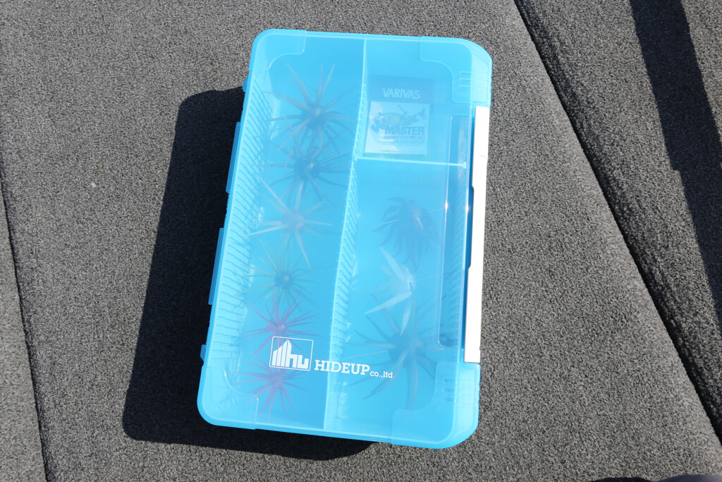 たまらんばい永野のガイド艇に用意されていたのが、ハイドアップブルーをまとった収納ケース。