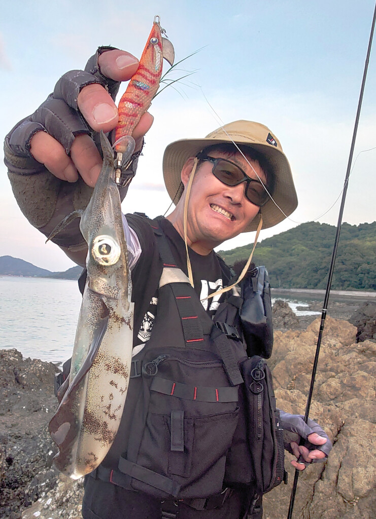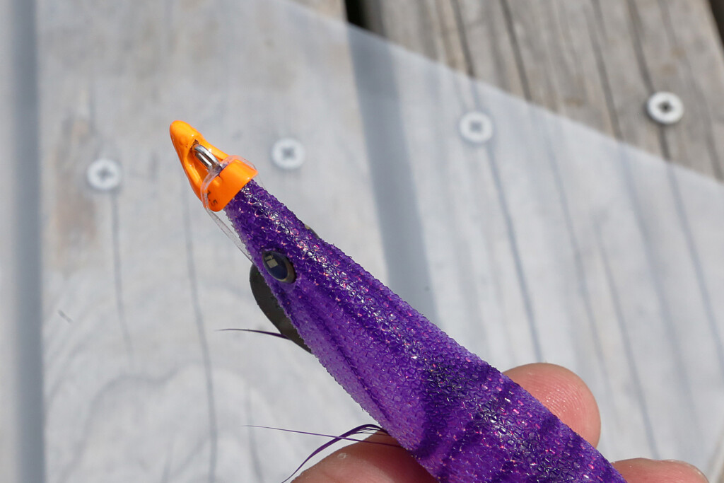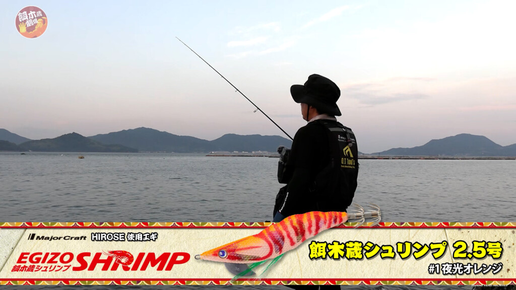 ヒロセマンが選んだエギは、晩夏から初秋でシャロー、さらに濁りがあるため、餌木蔵シュリンプ2.5号の夜光オレンジ。