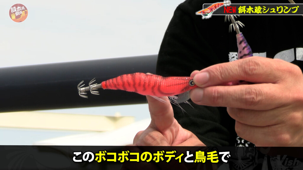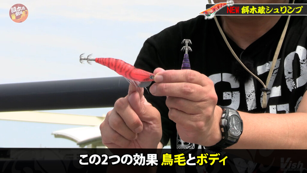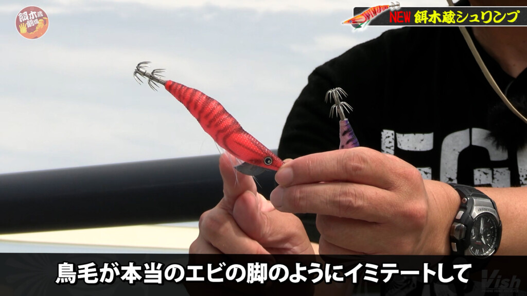 餌木蔵シュリンプに搭載されたギミックが、エビの脚のような鳥毛。シュリンプフェザー!