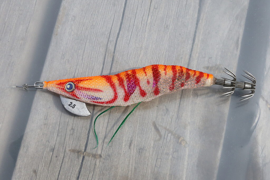 シバターが使っていたのは、同じく餌木蔵シュリンプ2.5号の夜光オレンジ。