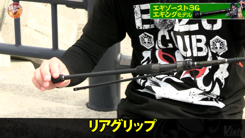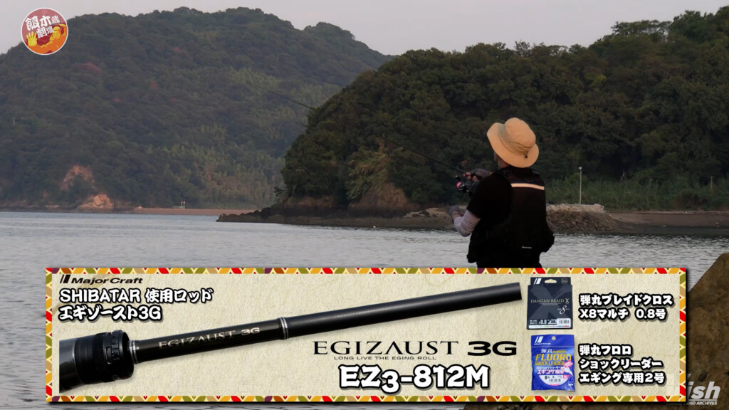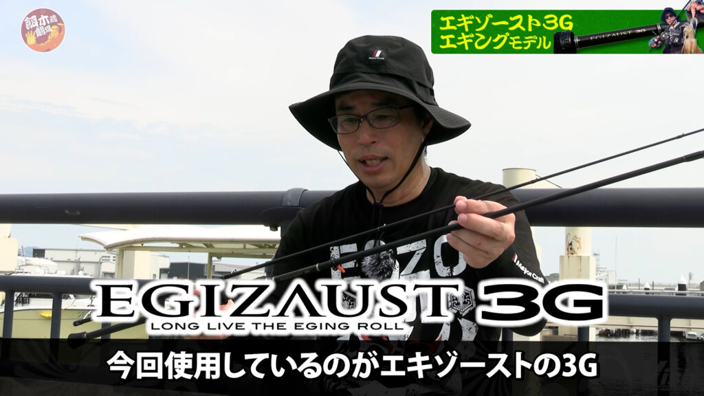 今回は最新ロッドシリーズ「エギゾースト3G」を使用。