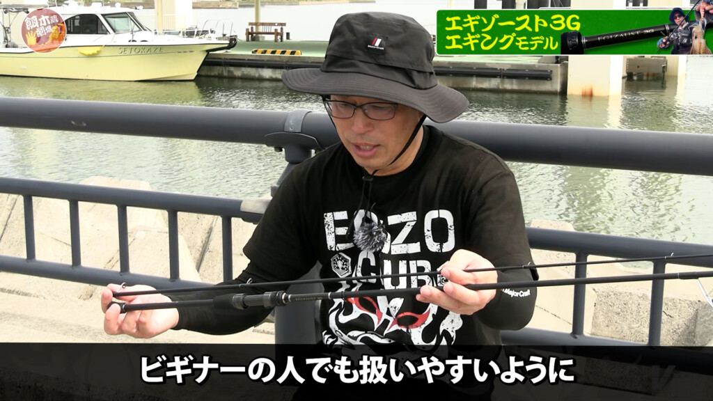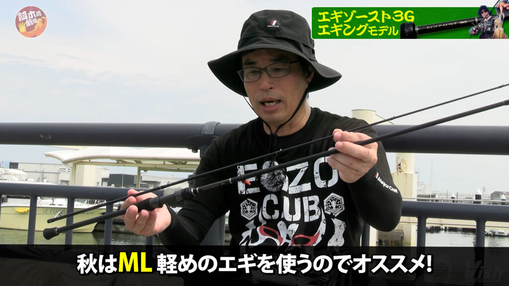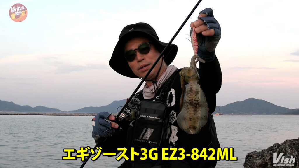 使っていたのは、メジャークラフトのエギングブランド「エギゾースト」で、最新モデルとなるエギゾースト3GのEZ3-842ML。
