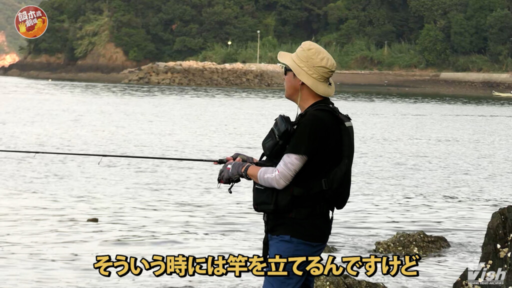 エギングでシャローを攻める際、どうしてもエギの沈むスピードを遅らせるためロッドを高く構えてやる必要が出てくる。