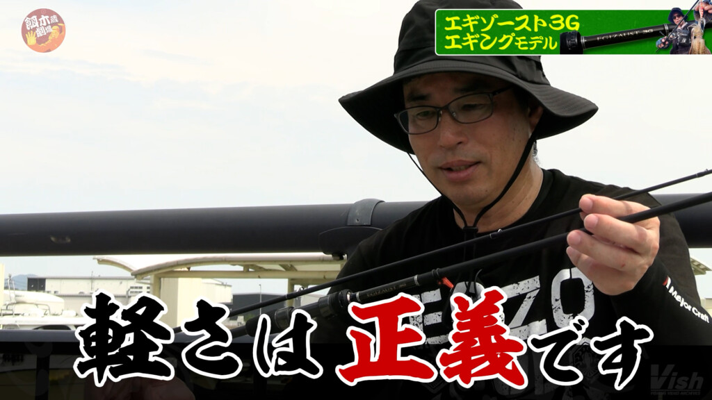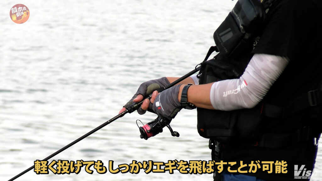 使っていたエギにも秘密はあるが、そのエギを操るロッドも新たなモデルだった。