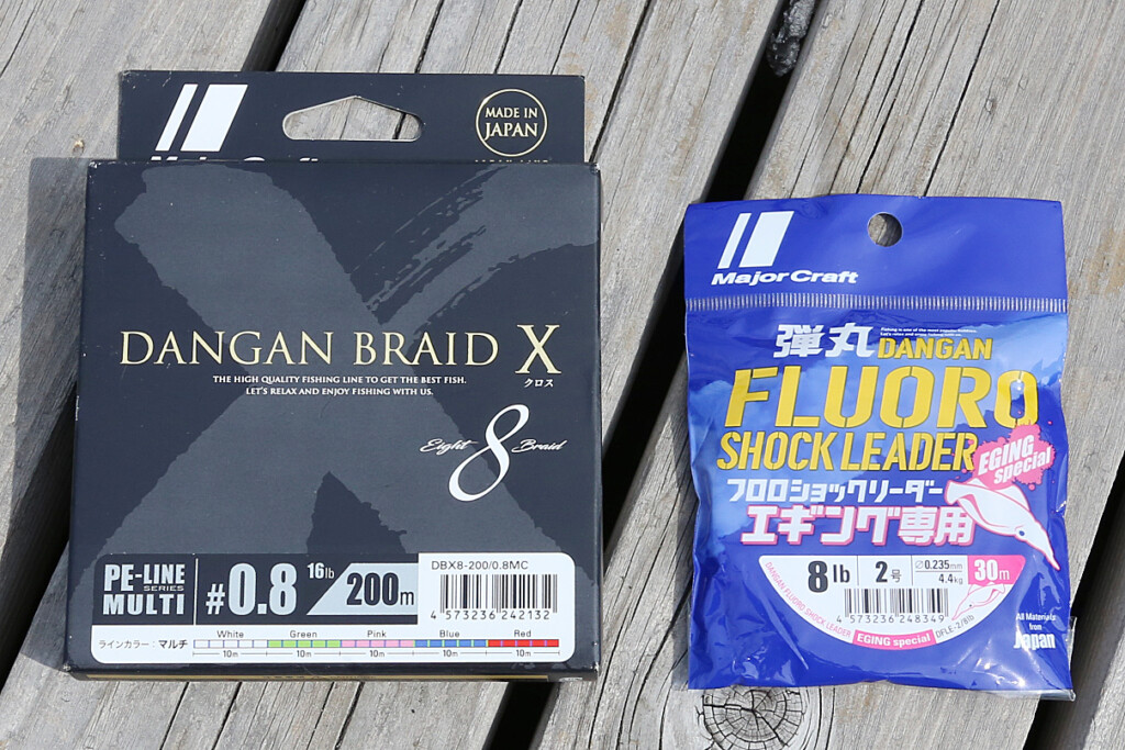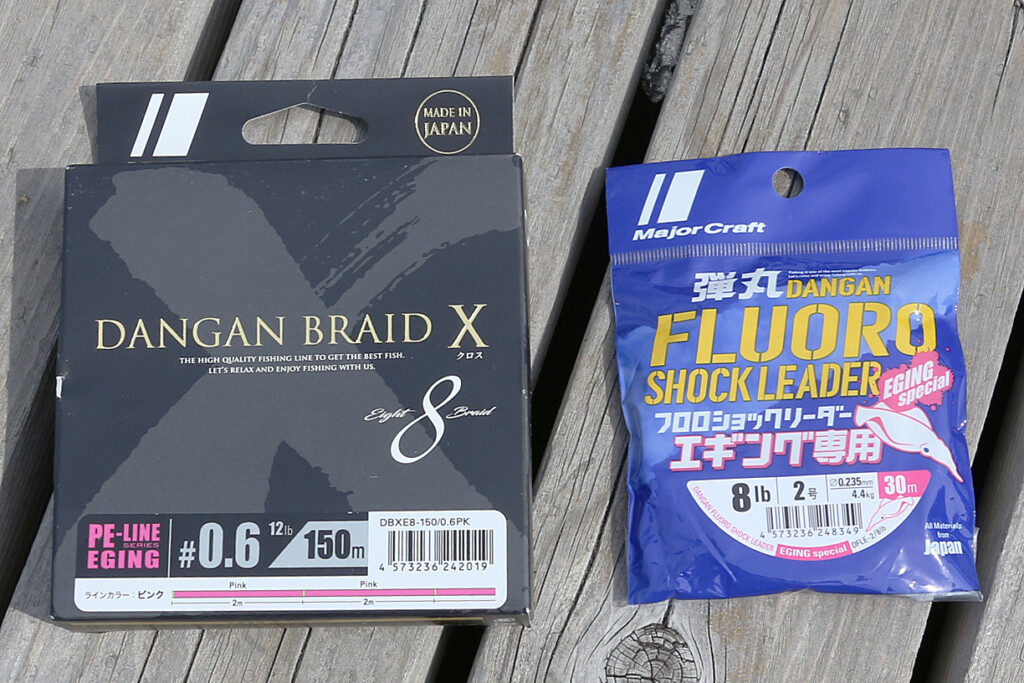 リールは2500番台で、ラインは弾丸ブレイドクロス・エギング専用X8の0.6号。