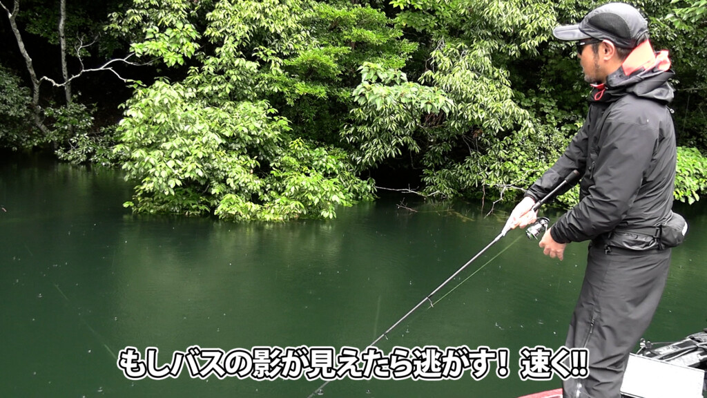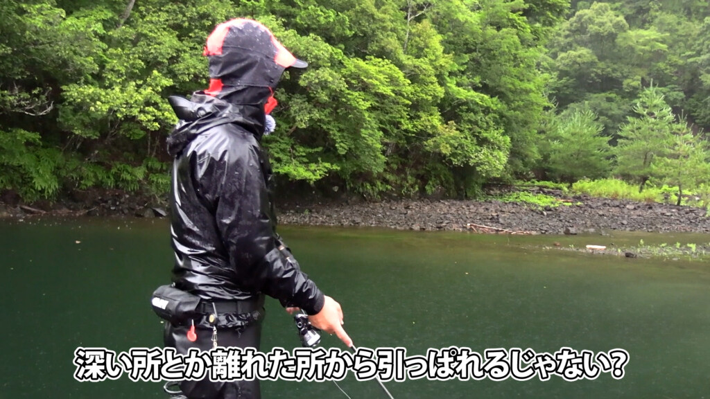 もし、魚が付いてきた時は、リアクション要素を高めるためリーリングスピードをUP。