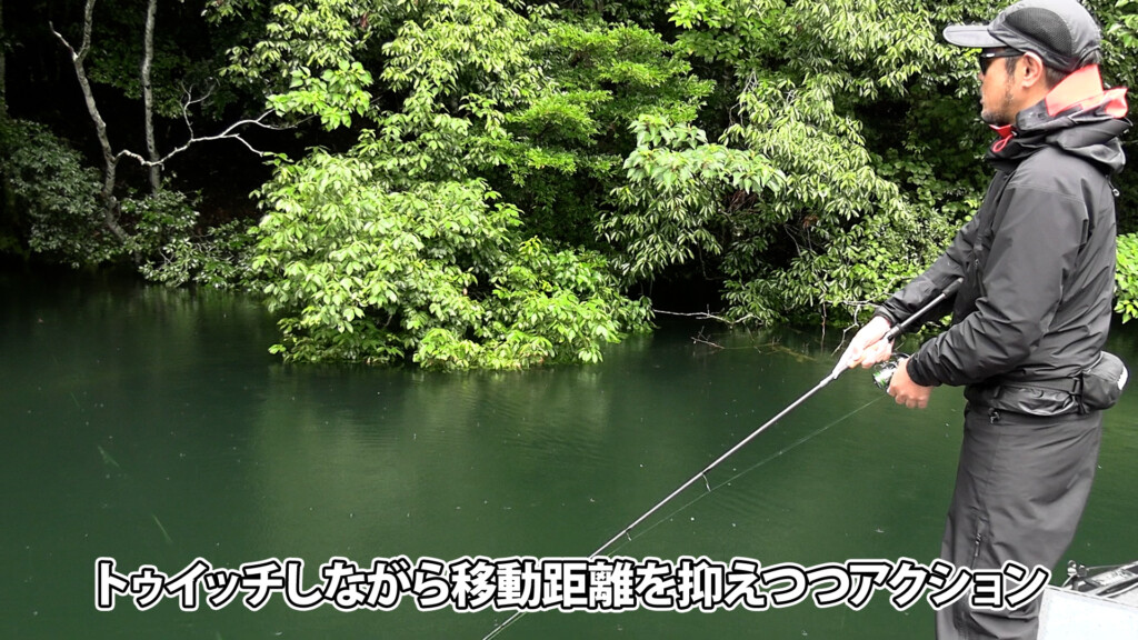 少し水深があって魚が付いてくるまでに時間差がありそうな場所では、トゥイッチして引きシロに対して移動距離を抑えて使用。