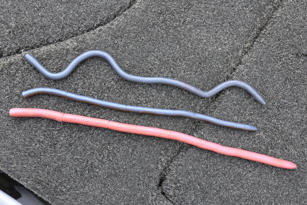 これぐらいのボリュームがあってアクションにクセのあるモノは、深い所や離れた所の魚も引っぱれるのが、このワームのスゴいところ。