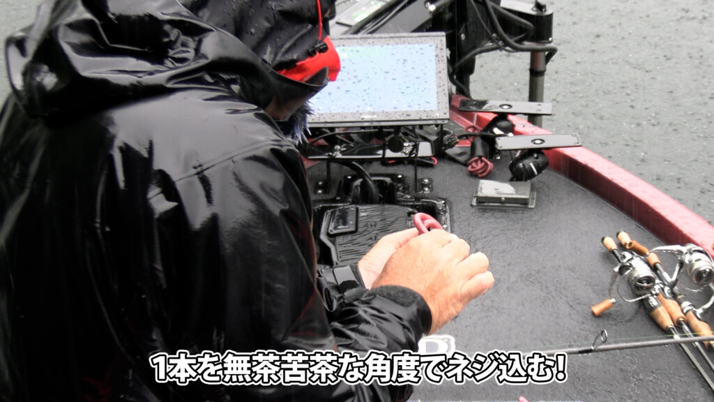 ラストに、カナモの場合は1本を無茶苦茶な角度でネジ込む。これで終了!
