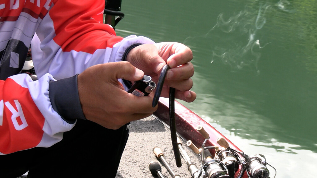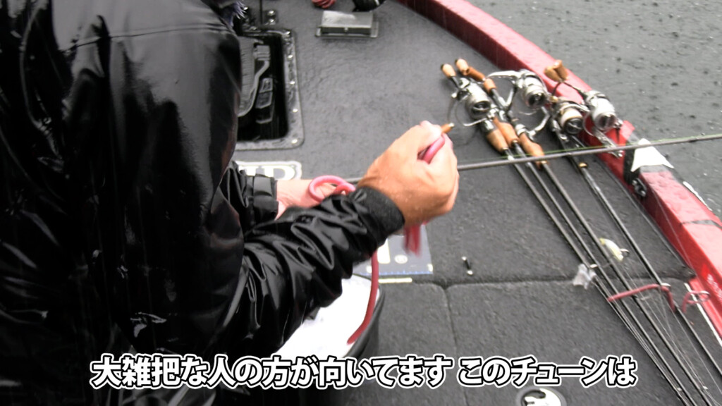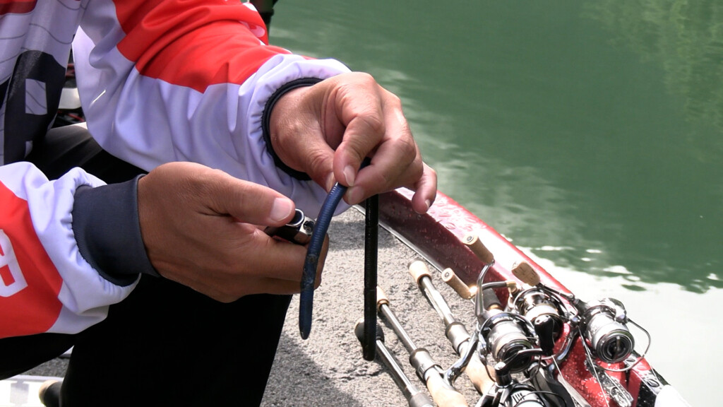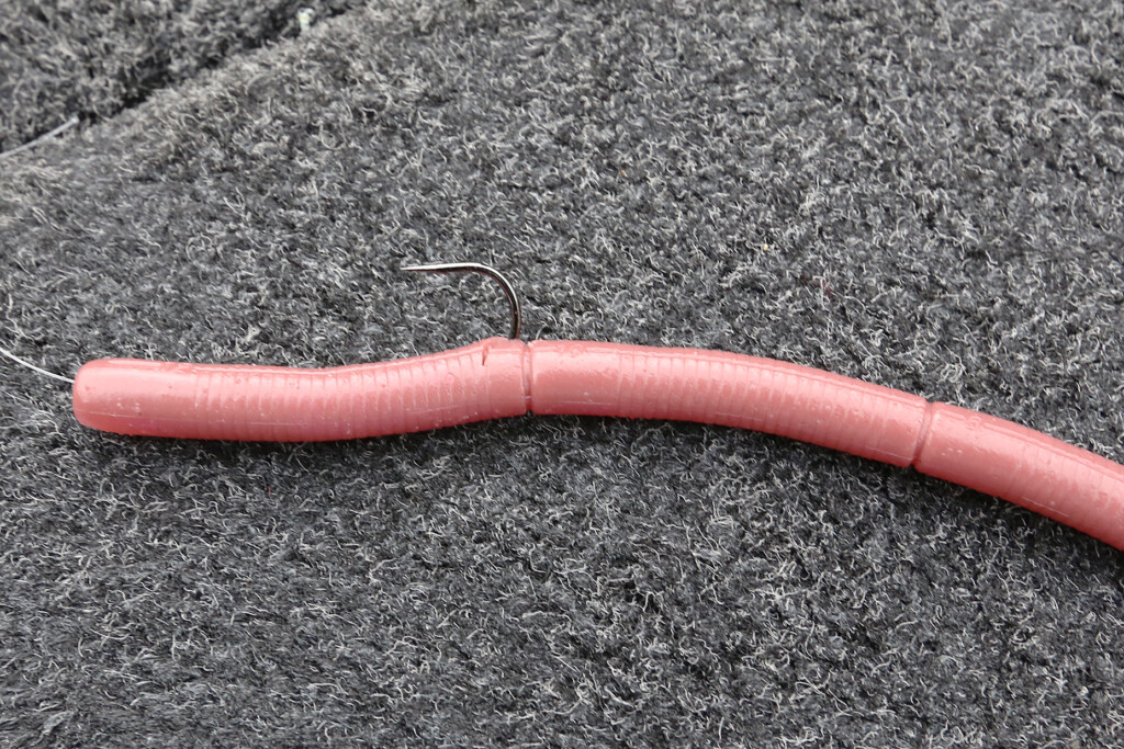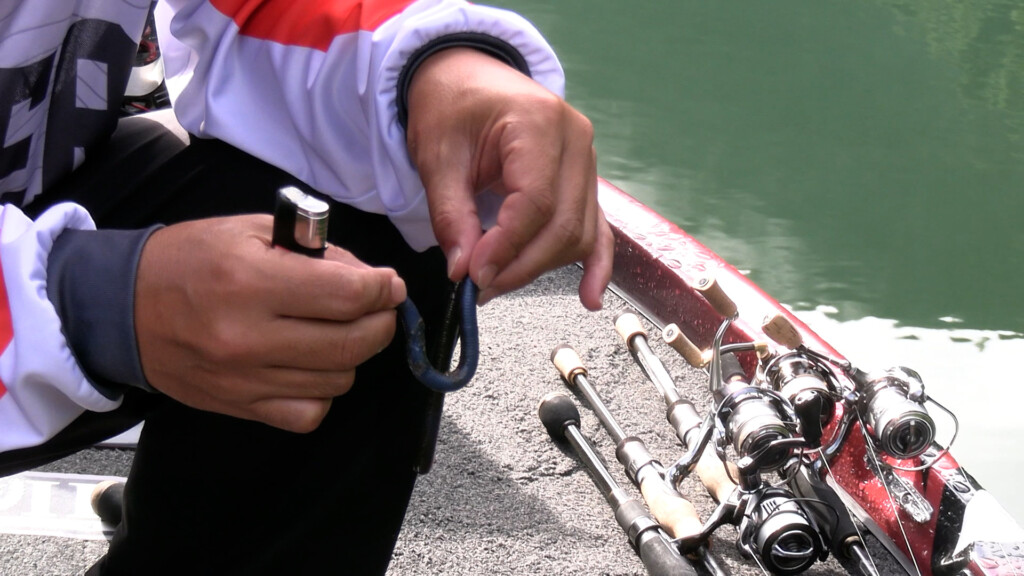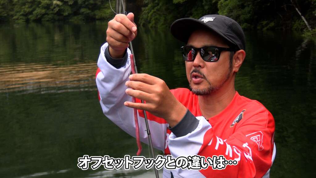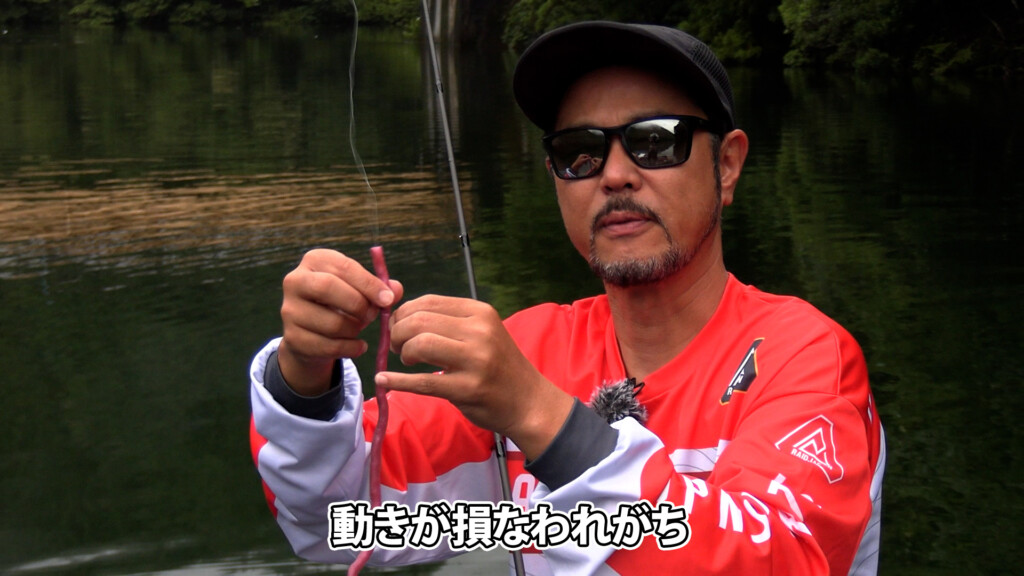 つまり、ワームにフックを通した時に生まれる突っ張り感が、独特のスイムアクションを損なうとのこと。