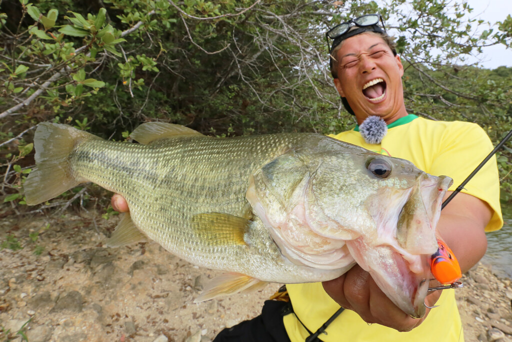 しっかり見せても食わないデカバスには、ハードベイトのリアクション+αが効きすぎる!!