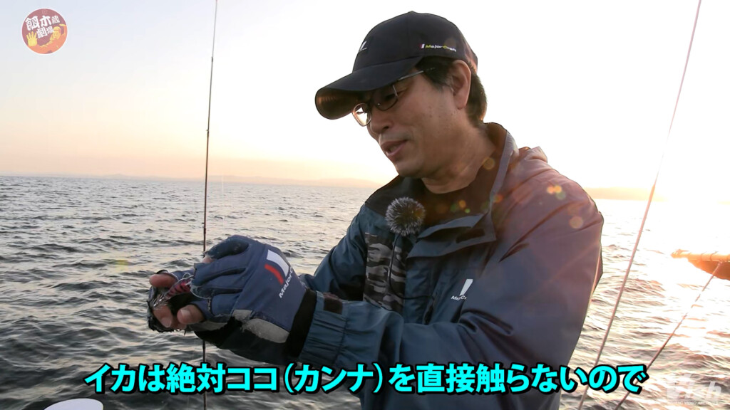 エギのボディを触ったり、抱いたりするので、その時にエギをスライドさせるため、しっかりしたアワセが必要。