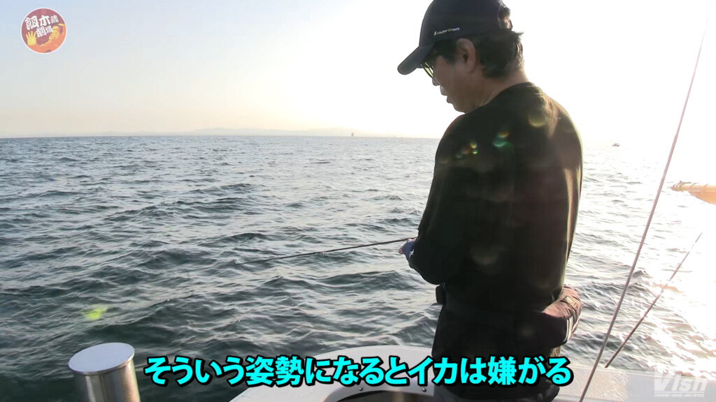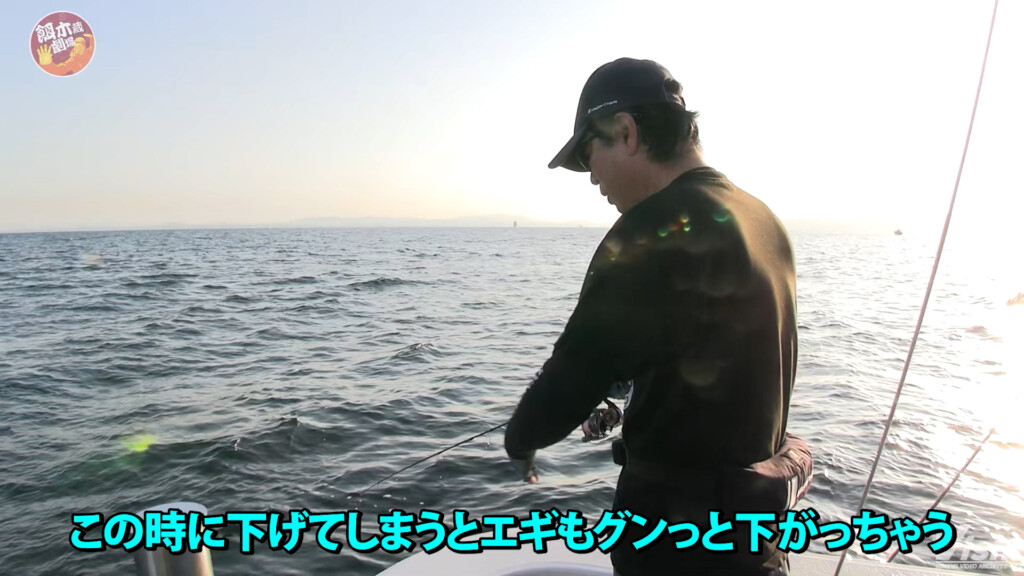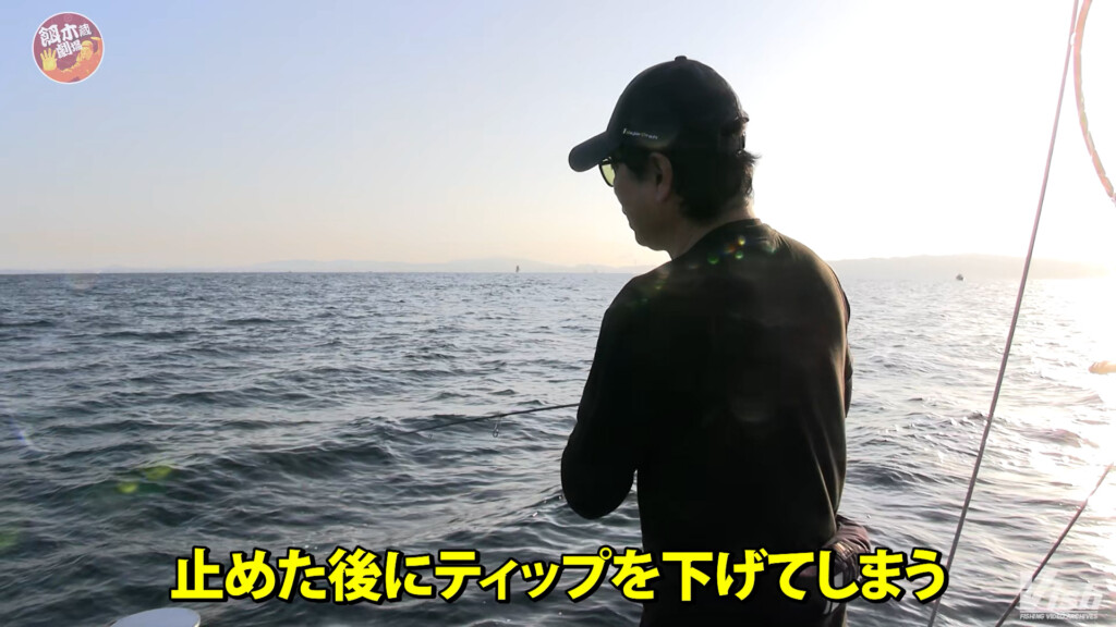 ヒロセマンいわく、ティップランでイカのアタリがあまり取れない人の特徴は、エギをピタっと止めたあとにロッドティップを下げてしまう人に多いとのこと。