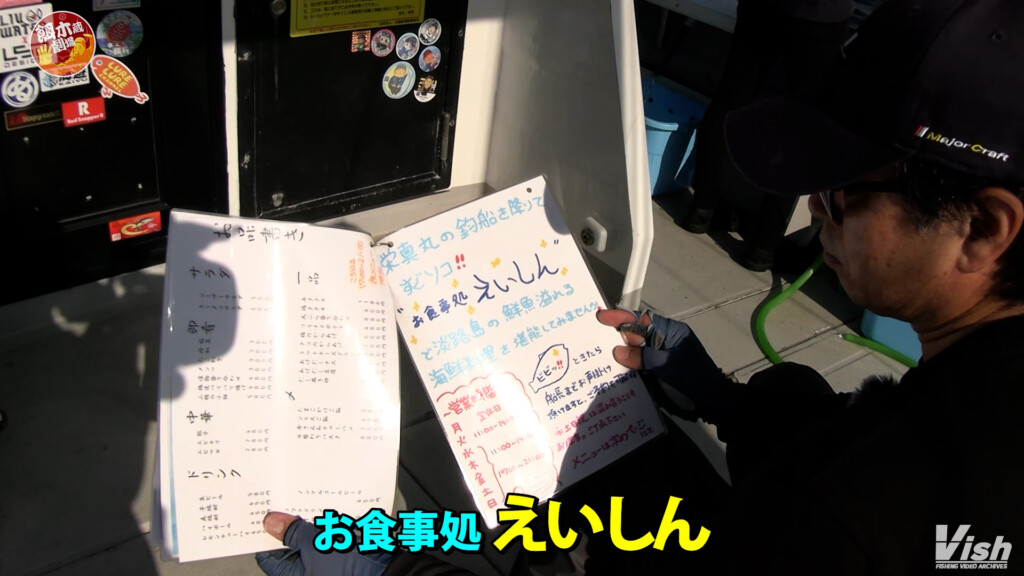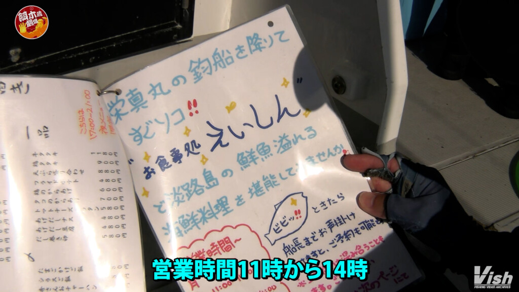 これは栄真丸の駐車場からすぐそこのお食事処「えいしん」さんのメニュー。