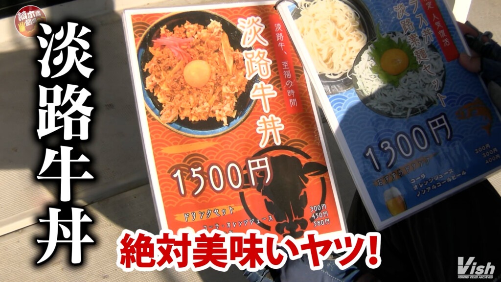栄真丸で釣りしたら、ぜひ淡路牛丼もシラス丼も、鯛潮ラーメンも味わってください!