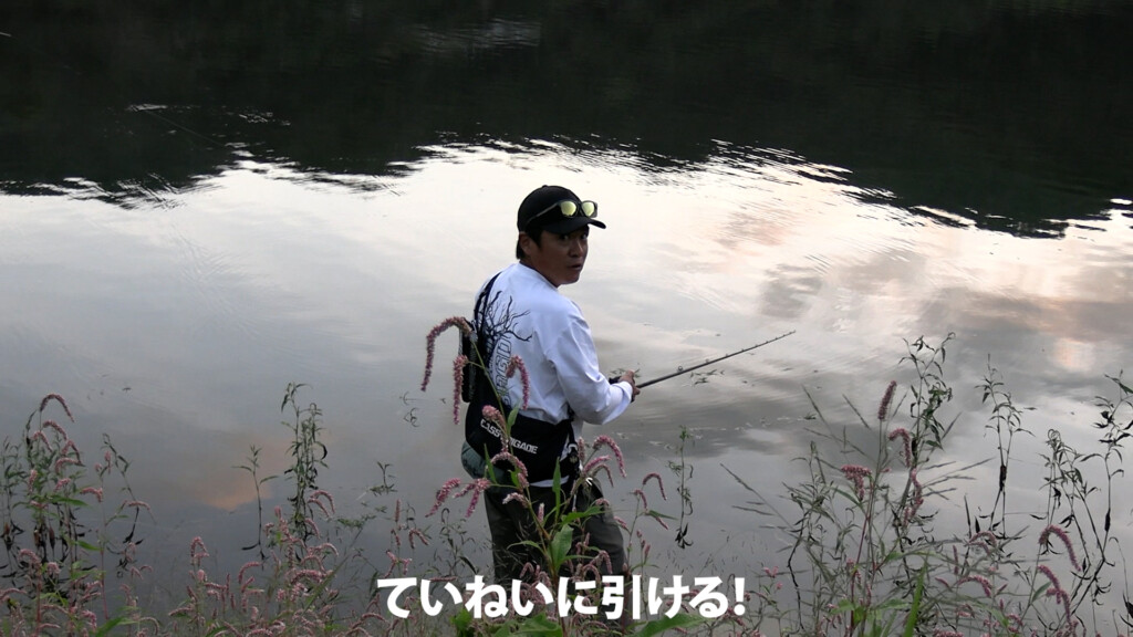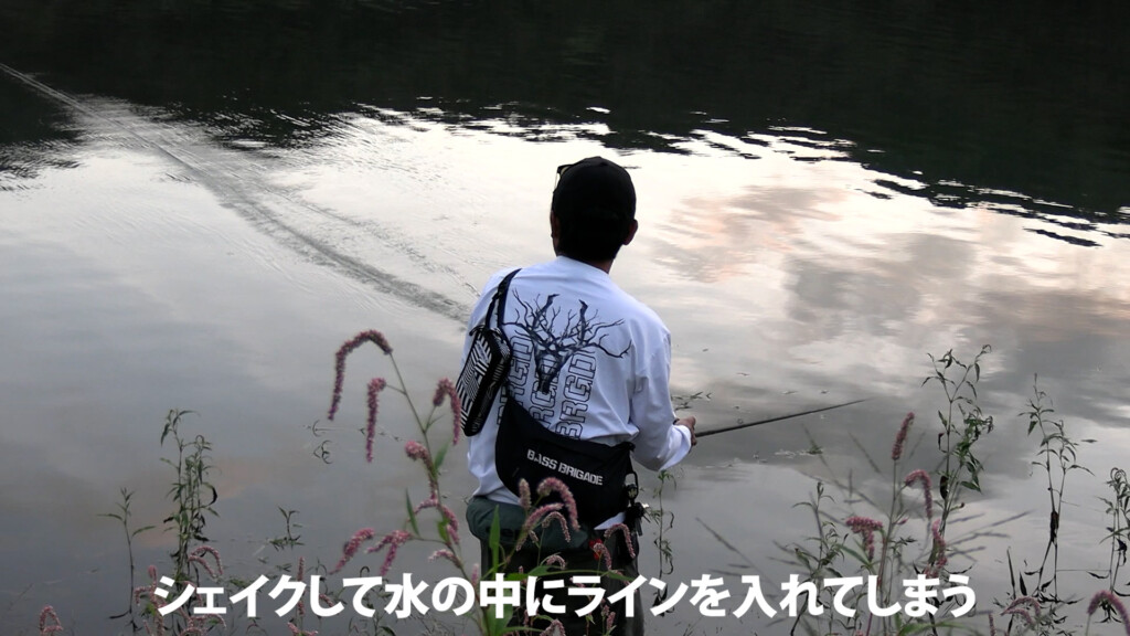キムケンが意識して行っていたのは、着水してすぐに巻くのではなく、その場でルアーを沈めながらラインもしっかり沈めること。