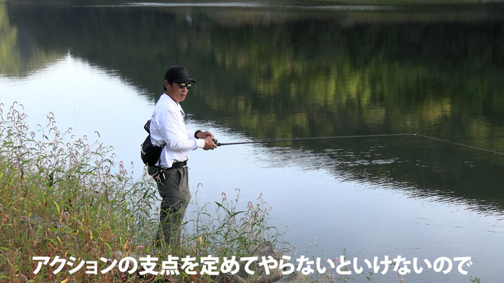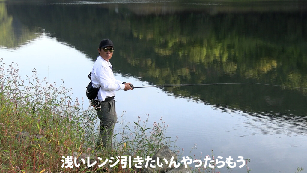 ルアーを沈めながらシェイクすることでラインも同時に沈めることができ、沖の変化や食わせシロもしっかりトレースできる。
