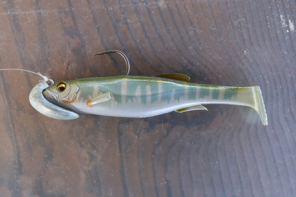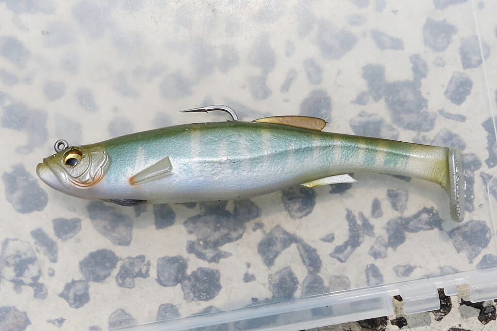 メガバスのマグドラフトは、数あるスイムベイトの中でも非常に水押しの強いタイプだが、テールアクションが生みだすヘッドシェイクも秀逸。