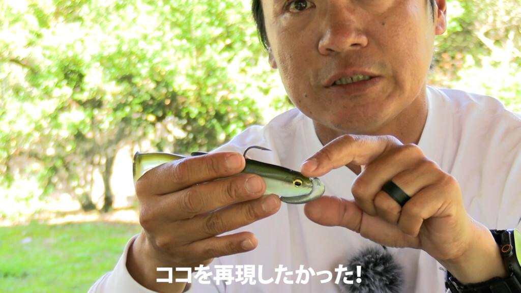 ボトムの変化に付くバス、そしてソルトのロックフィッシュを狙う時にも非常によさそうだが、キムケンはスイムベイト系ワームで使用。