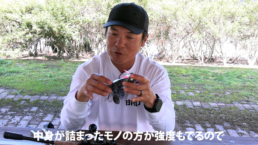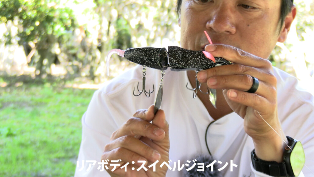 キムケンも原型をイジりながらいろいろと試してきたそうで、現時点でたどり着いたセッティングはラインテンションを掛けるだけでモジモジ動いてくれるとのこと。