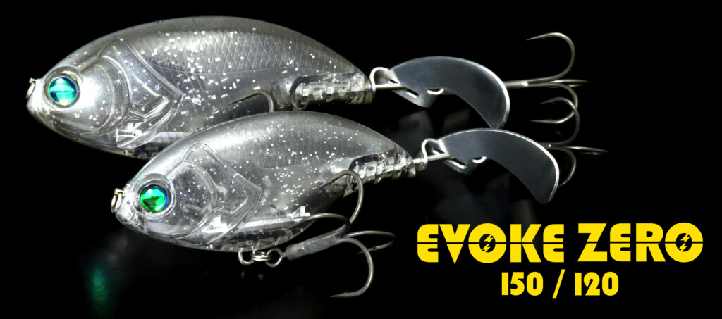 イヴォークボディにジュラルミン製シングルプロップが備わり、決して流麗ではないシルエットの爆音ノイジー『イヴォークゼロ』は、キモとなるシングルプロップの偏芯運動から生み出されるスクイーク音やクラップ音を水中へ騒がしく響き渡らせ、通常では惹き寄せられない深いレンジにいるバスにもアピールしバイトへと誘ってくれます。