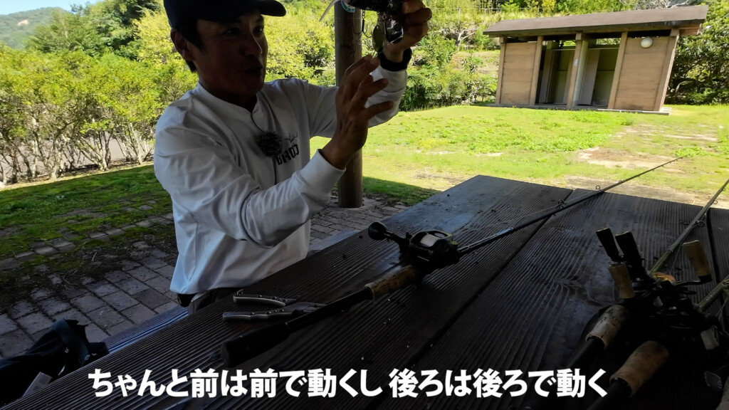 キムケンも原型をイジりながらいろいろと試してきたそうで、現時点でたどり着いたセッティングはラインテンションを掛けるだけでモジモジ動いてくれるとのこと。