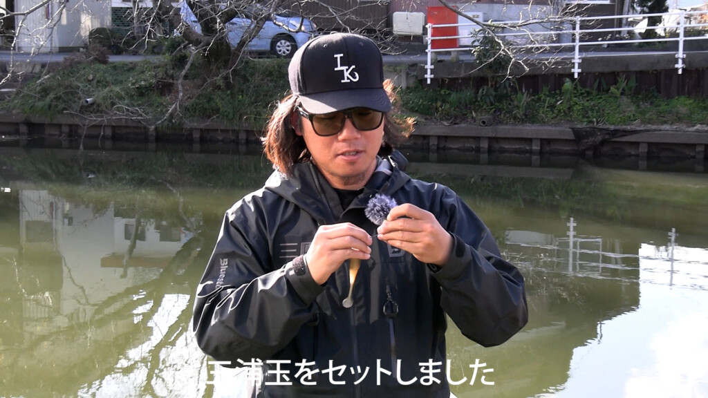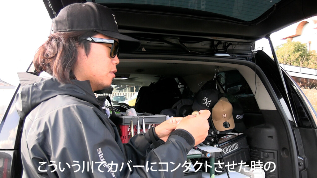 淀川でよくあるシチュエーションでもある石積みにノーシンカーでコツコツ当てながら巻くことを強く意識して作ったとのこと。