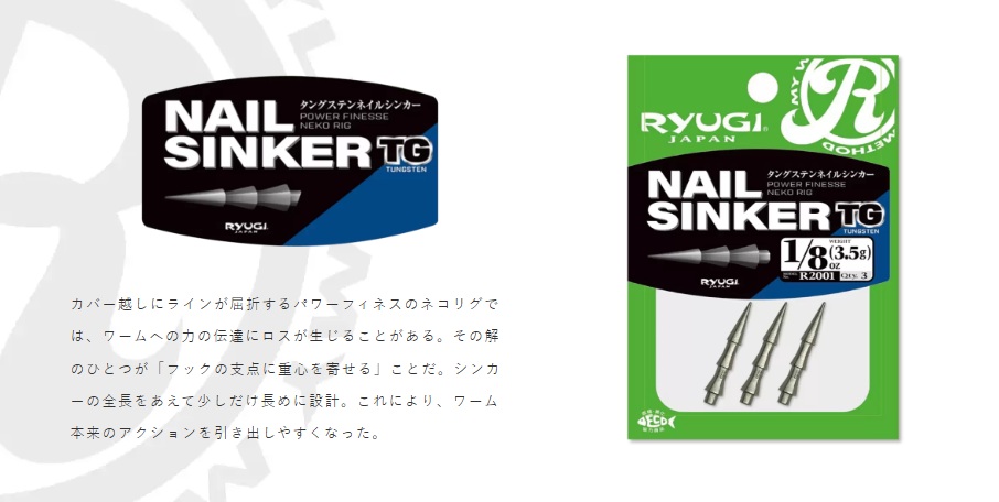 その解のひとつが「フックの支点に重心に寄せる」ことだ。RYUGIはこの原理に基づき、シンカーの全長をあえて少しだけ長めに設計。これにより、ワーム本来のアクションを引き出しやすくなった。
