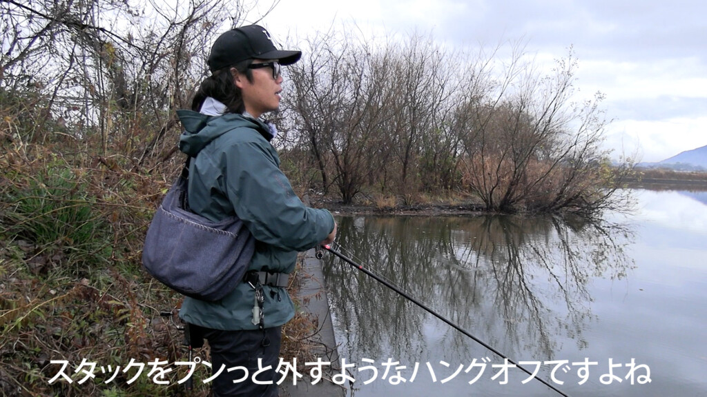ボトムに当てながら巻くワケだが、一番のキーは、引っかかって抜けた瞬間のプン!やブンっ!というハングオフアクション。