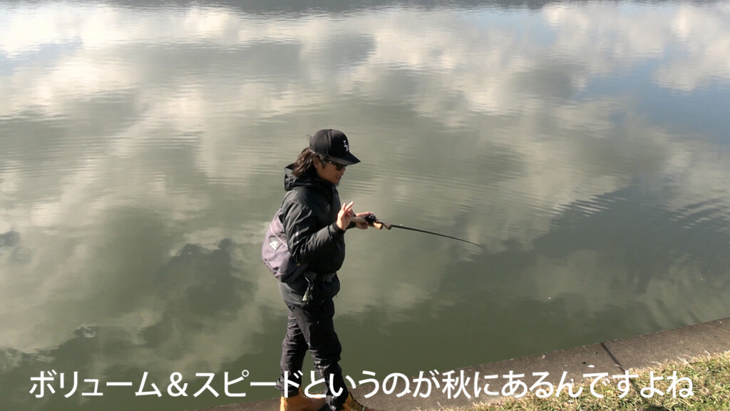 そのまま水温が低下して冬に向かうため、ルアーのボリュームはそのままだが、ルアーのスピードは魚の反応しやすい瞬間的なものに変わっていく。