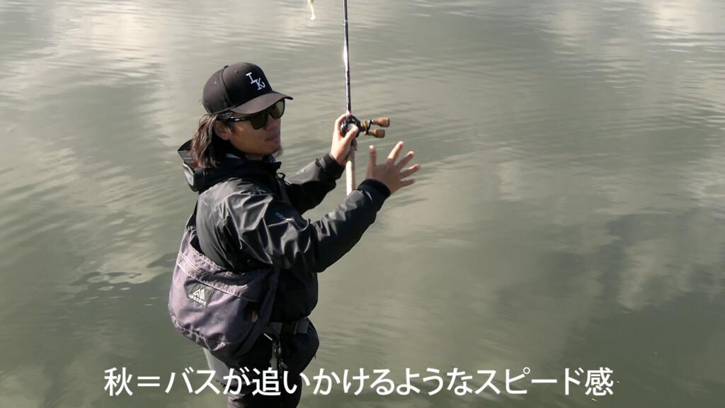 つまり、秋はバスがエサを果敢に追いかけるスピード感が大事で、冬はバスの目の前を瞬間的に駆け抜けるスピードがバイトにつなげやすい。